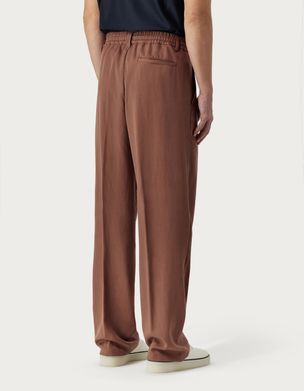 垂顺赤褐色莱赛尔纤维休闲束带奇诺裤