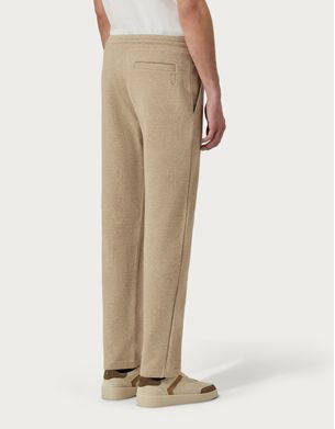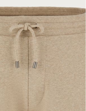 米色印花经纱棉质抽绳长裤