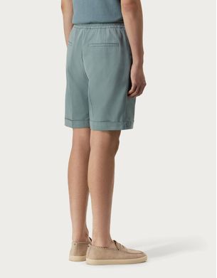 浅蓝色莱赛尔和垂顺棉质斜纹布百慕大短裤