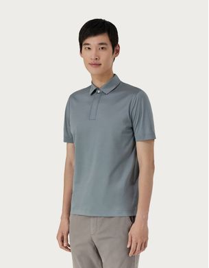 Canali Nuvola 天空色超细美利奴羊毛无缝 Polo 衫