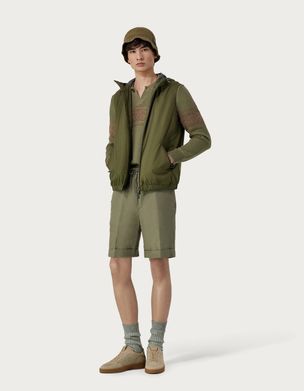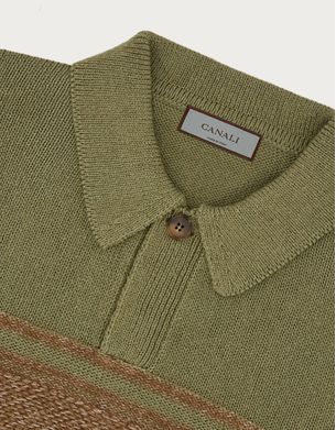 绿棕相间棉丝混纺Polo衫