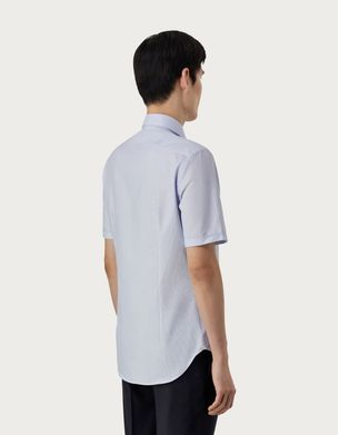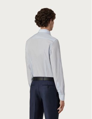 Impeccabile浅蓝色和白色条纹棉质修身衬衫
